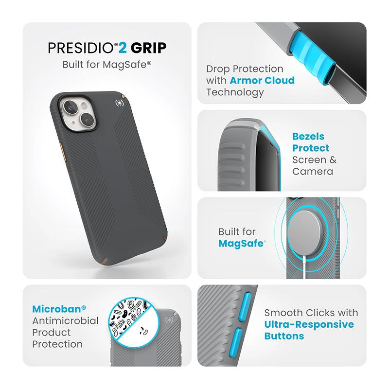 Speck Presidio2 Grip Magsafe - tok iPhone 15 Plus / iPhone 14 Plus (szénszürke / hideg bronz / fehér)