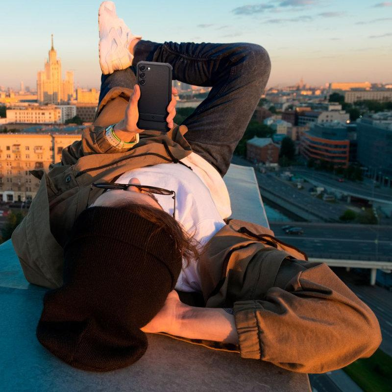 - A Spigen Rugged Armor egy tartós és ütésálló, rugalmas TPU-ból készült tok a fokozott tapadás és kényelem érdekében. Nem teszi a telefont jelentősen vastagabbá, megtartja eredeti formáját, miközben védi a sérülésektől