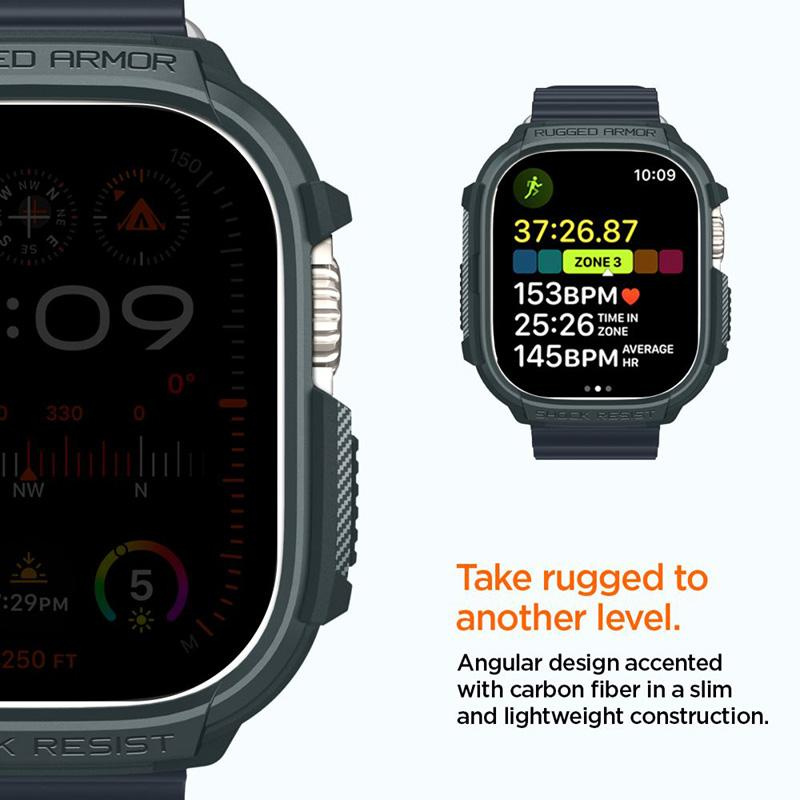 Spigen Rugged Armor - tok Apple Watch Ultra 1/2 49 mm-es órához (Abyss Green)