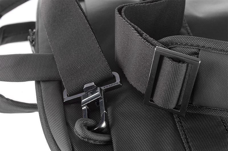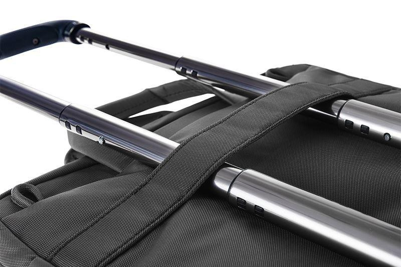 - A hátsó pánt lehetővé teszi, hogy a táska az utazótáska vállára helyezhető legyen