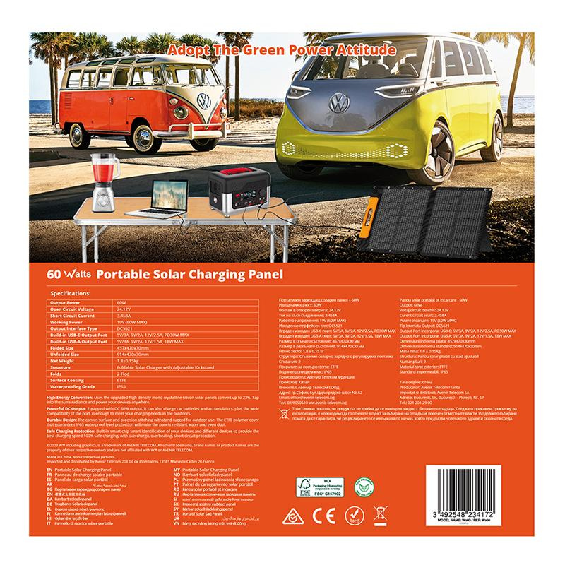 The Wonder Ws60 60W portable solar panel / solar charger equipped with a 30W PD USB-C output and 18W QC3.0 USB-A output will provide fast charging for devices in the field. The panel, thanks to its DC5521 output, is also compatible with most portable power stations on the market.