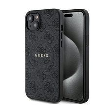 Guess 4G Collection Leather Metal Logo MagSafe - Etui iPhone 15 / 14 / 13 (czarny)