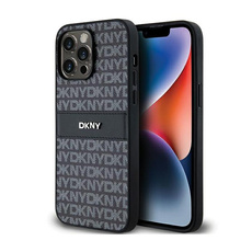 DKNY Leather Checkered Mono Pattern & Printed Stripes - Etui iPhone 15 Pro (czarny)