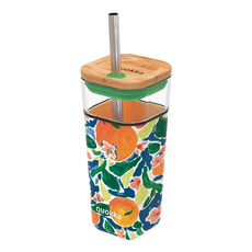 Quokka Liquid Cube - Kubek szklany 540 ml ze słomką ze stali nierdzewnej (Oranges)