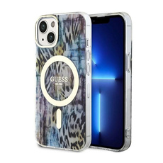 Guess Leopard MagSafe - Etui iPhone 14 (Niebieski)