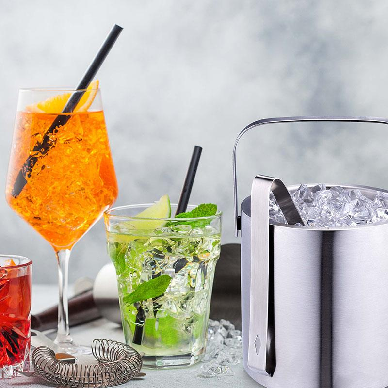 - Praktyczne wiaderko na kostki lodu jest absolutnym must-have na gorące letnie dni. Pojemnik wykonany jest ze stali nierdzewnej z podwójną ścianką izolacyjną i zapewnia wyjątkowo długie chłodzenie i izolację.