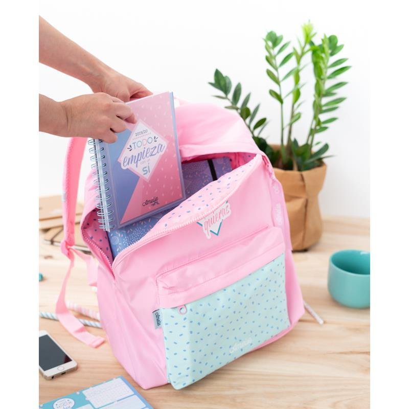 - Plecak z kolekcji Amelie Pastel, w różowo-błękitnym kolorze. Posiada jedna większa kieszeń oraz drugą mniejszą na podręczne akcesoria.