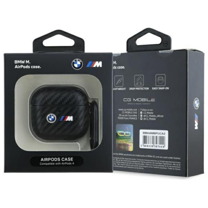 The BMW Carbon Double Metal Logo case for AirPods 4 is the perfect combination of elegance, functionality and modern design. Made of high-quality polycarbonate and PU Carbon material, the case offers not only a unique look but also reliable protection.