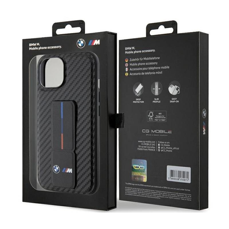BMW Grip Stand Smooth & Carbon - Etui iPhone 15 (czarny)