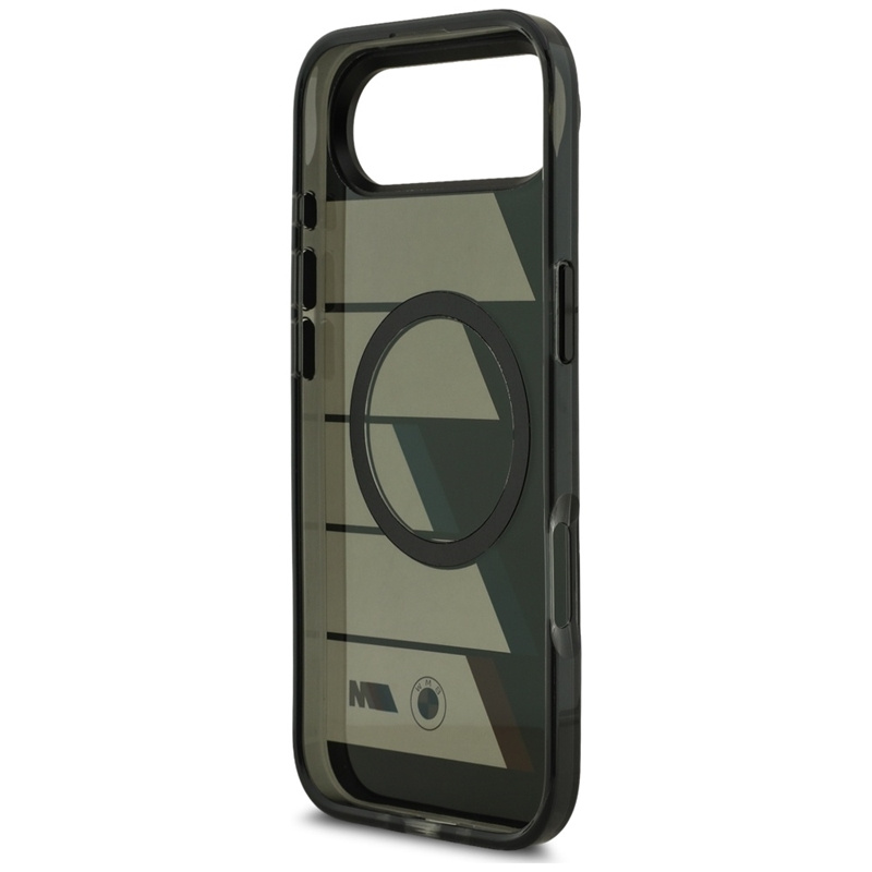 The case is made of a durable PC/TPU combination, equipping it with a translucent body that subtly exposes the color of the phone and gives it a modern, technical look. The rear is adorned with the signature BMW M motif – geometric graphics with translucent stripes in the iconic M colours (Blue, Navy Blue and Red) and the BMW M logo, which emphasises the authenticity and uniqueness of the design.
