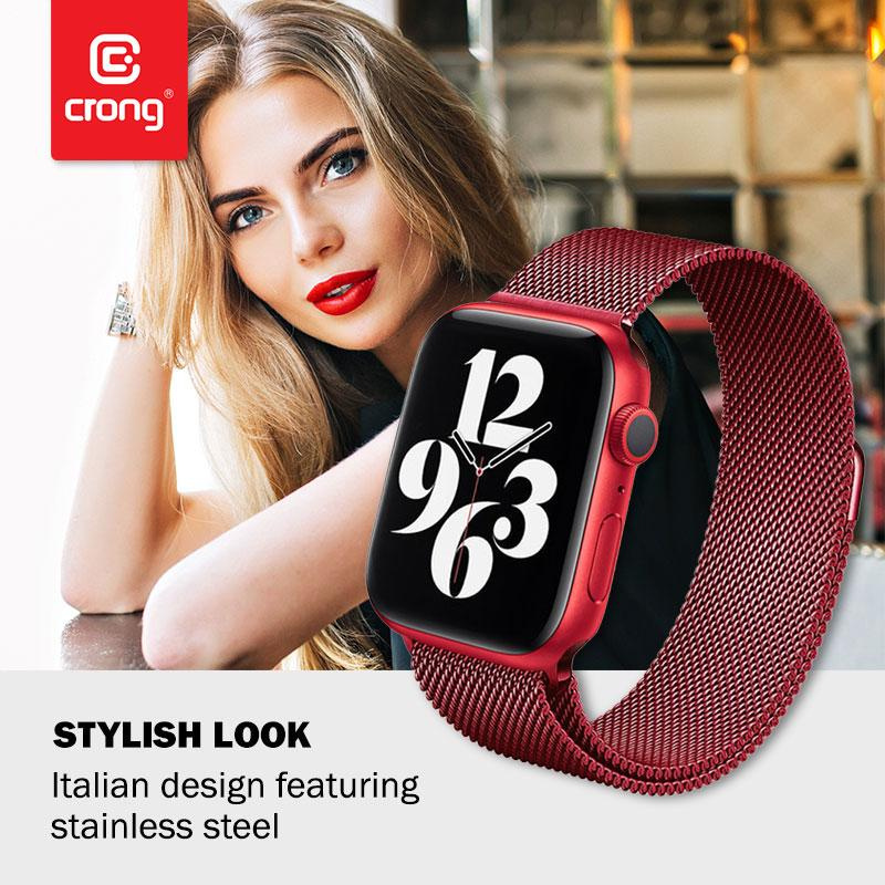Crong Milano Steel – Pasek ze stali nierdzewnej do Apple Watch 38/40/41/42 mm (czerwony)