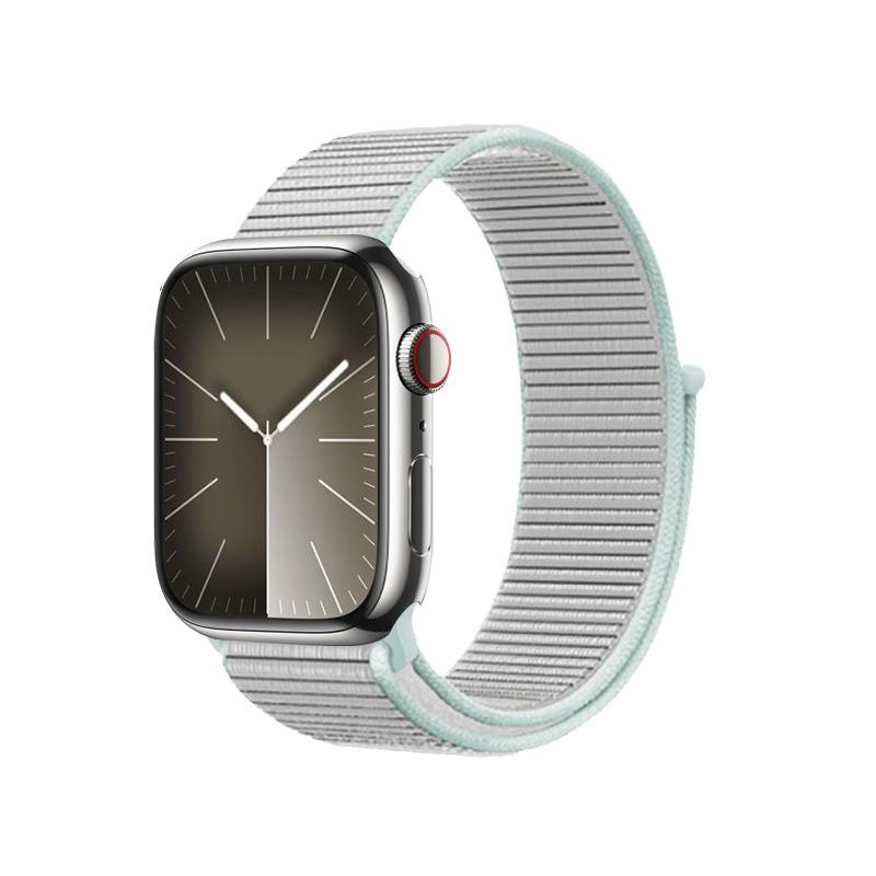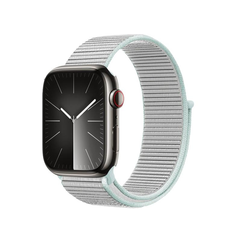 Cinturino sportivo in nylon traspirante per Apple Watch con cassa da 38/40/41/42 mm. Una speciale trama in nylon crea una morbida fodera interna che non irrita la pelle e allontana l'umidità. Il cinturino in nylon è dotato di una chiusura a strappo eccezionalmente resistente, che garantisce una vestibilità sicura in ogni momento.