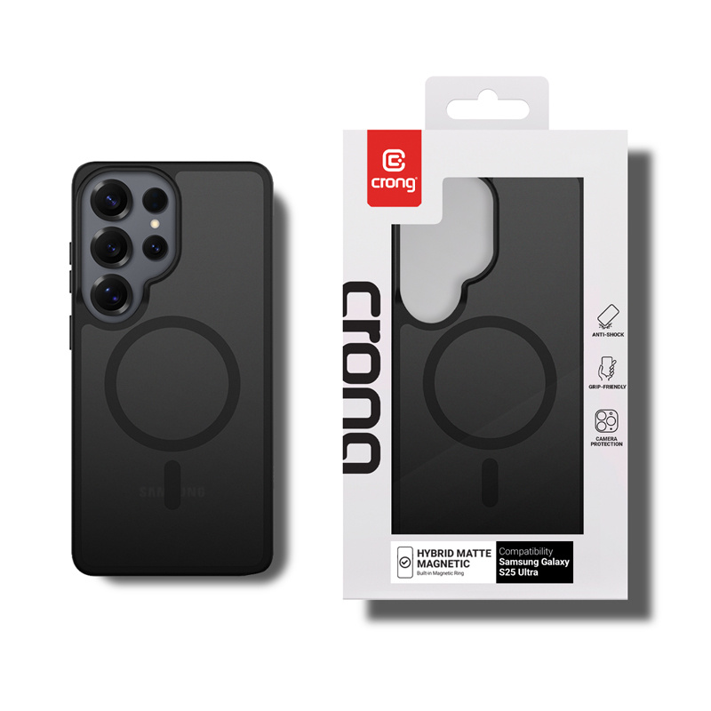 Custodia Crong Hybrid Matte Magnetic - MagSafe per Samsung Galaxy S25 Ultra (Nero)
