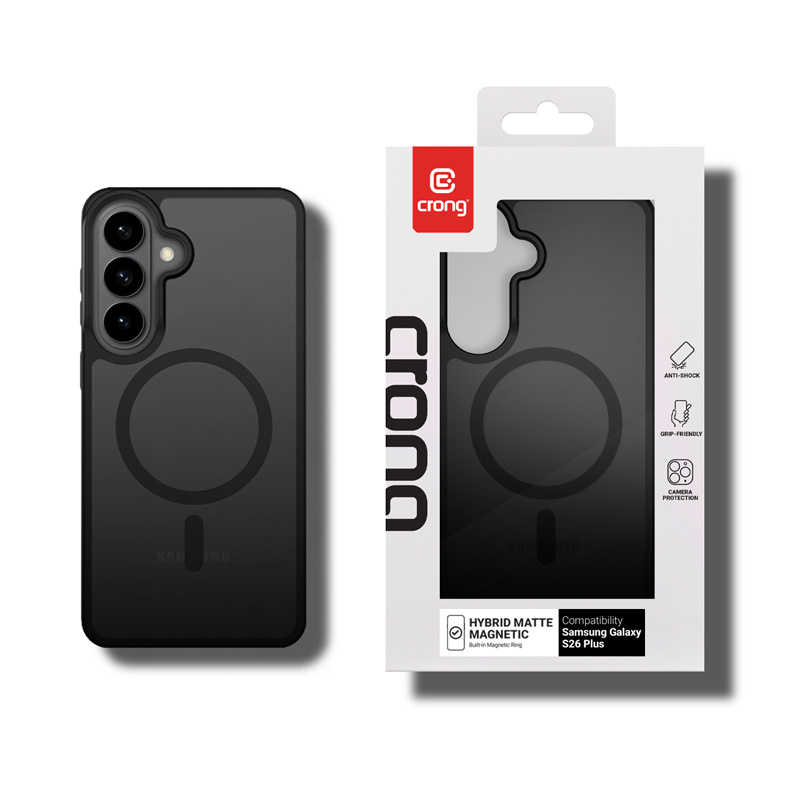 Custodia Crong Hybrid Matte Magnetic - MagSafe per Samsung Galaxy S26+ (Nero)