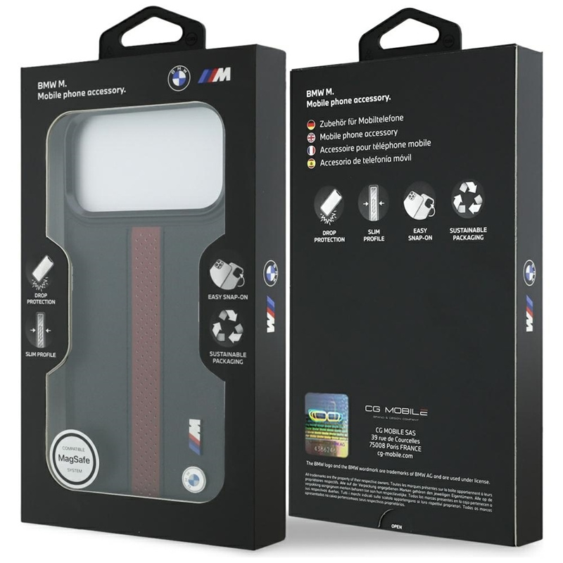Custodia MagSafe con logo BMW M a strisce perforate per iPhone 17 Pro Max (rossa)
