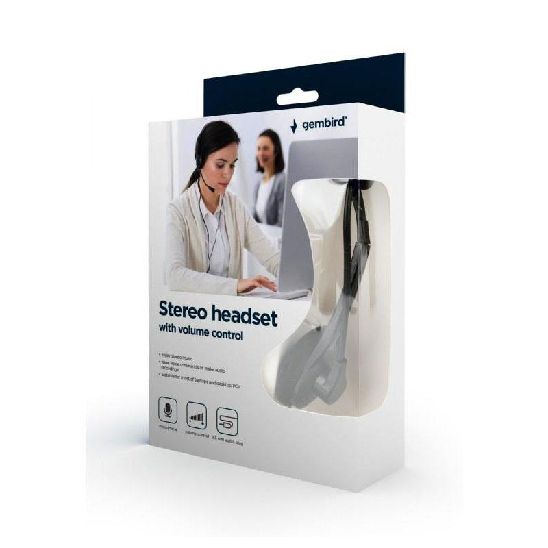 Comfortable stereo headset with integrated volume control.