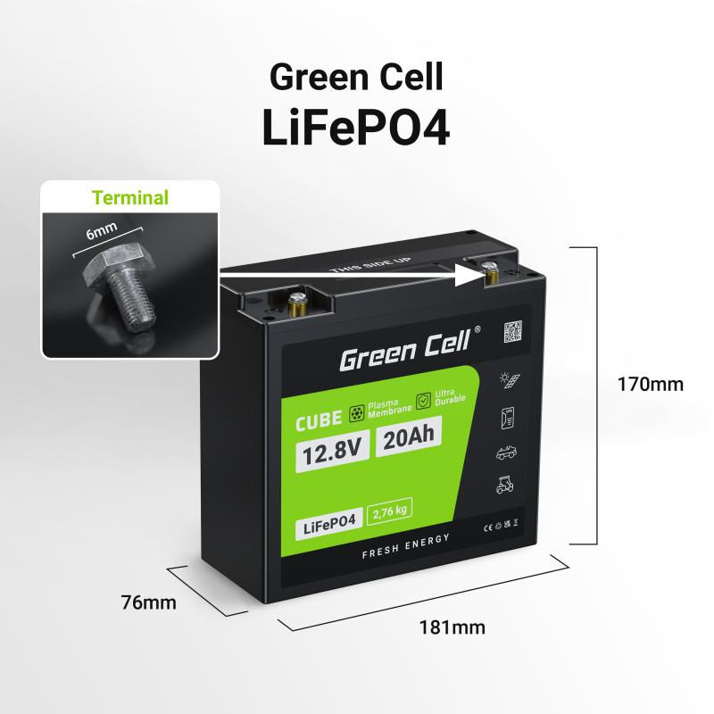 Green Cell - Akumulator LiFePO4 12V 12.8V 20Ah do systemów fotowoltaicznych, kamperów i łódek