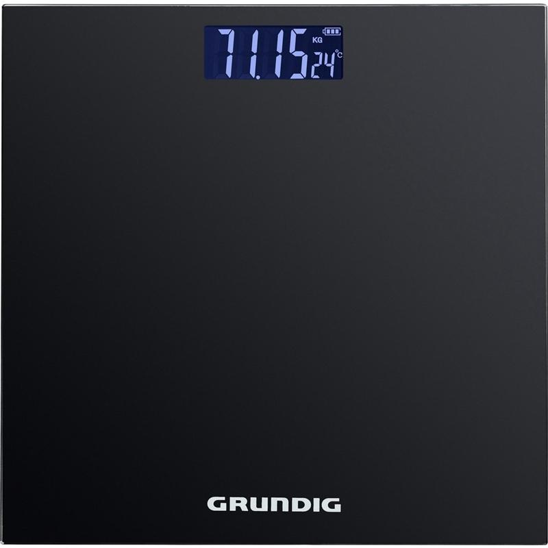 - Elektroniczna waga marki Grundig. Czytelny, podświetlany, energooszczędny wyświetlacz LCD bardzo dokładnie pokazuje wagę w odstępach co 50 gramów w zakresie 2 kg - 180 kg/400 lbs.