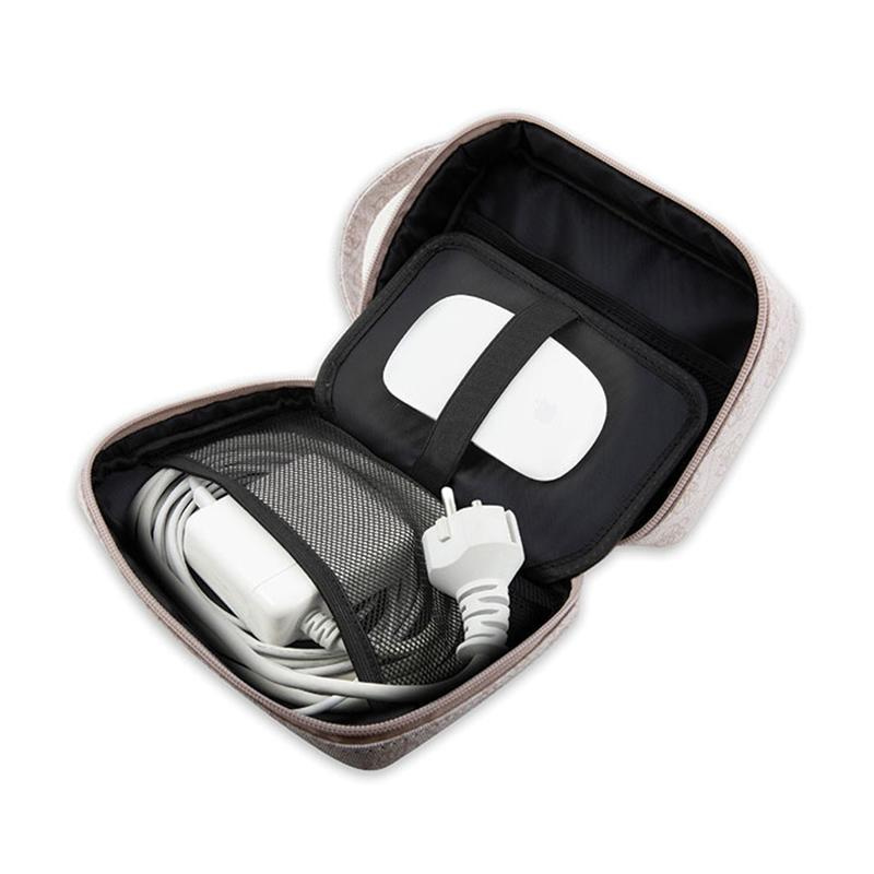 It is ideal for travelling. It allows you to have at hand all the electronic accessories you need for short or long journeys. The organiser has several internal pockets to keep everything tidy and prevent stored accessories from moving around. Comfortable handle.