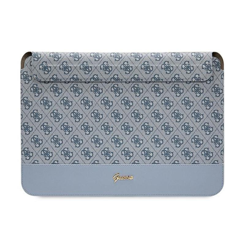 Guess 4G Stripe Metal Logo case for a 14-inch notebook. The product features one of the more famous motifs used by Guess, the 4G emblems, which are positioned on a pleasant-to-touch texture in Saffiano eco leather.