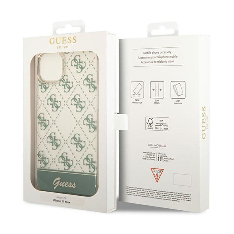 Guess 4G Stripe Script Logo Electroplated Pattern – Etui iPhone 14 Plus (khaki)