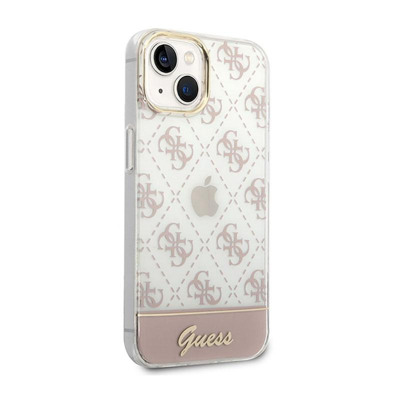 Guess 4G Stripe Script Logo Electroplated Pattern – Etui iPhone 14 (różowy)
