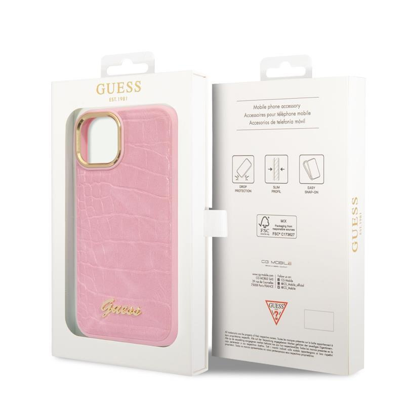 Guess Croco Collection - Case for iPhone 14 Plus (Pink)