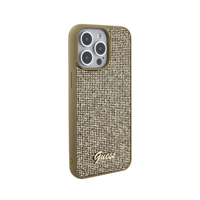 Guess Disco Metal Script - Case for iPhone 15 Pro Max (Gold)