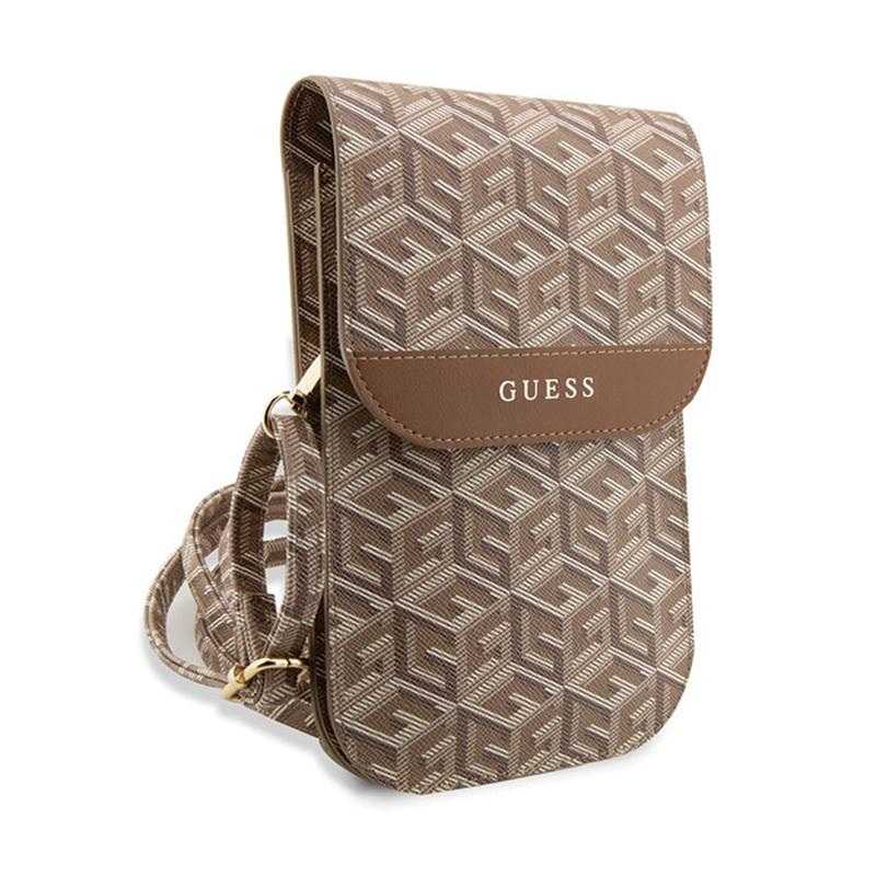 Guess GCube Stripe Phone Bag - Bag with smartphone compartment (Brown)