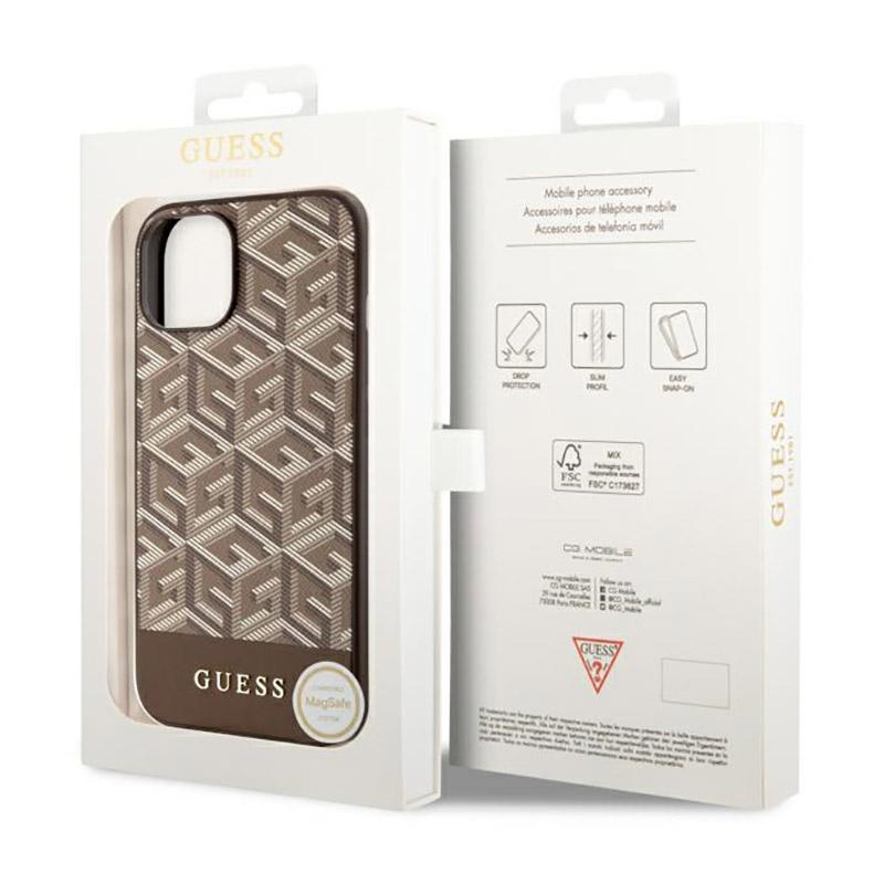Guess GCube Stripes MagSafe - Case for iPhone 14 (Brown)