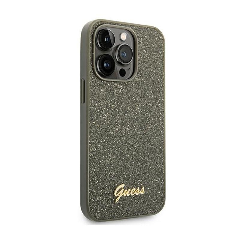 Guess Glitter Flakes Metal Logo Case – Etui iPhone 14 Pro (zielony)