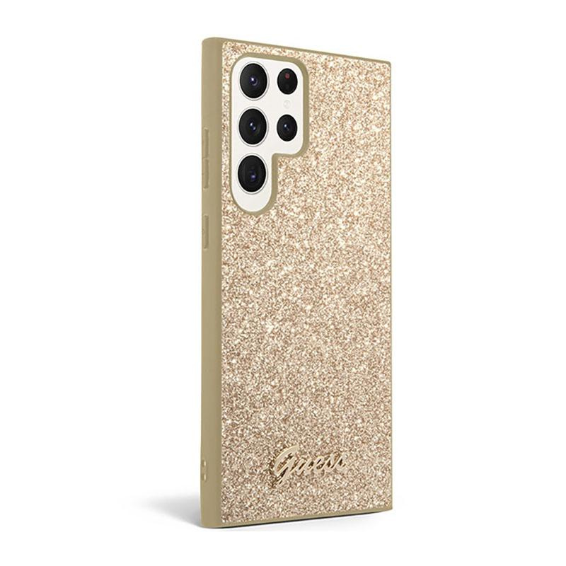 Guess Glitter Flakes Metal Logo Case - Etui Samsung Galaxy S23 Ultra (złoty)