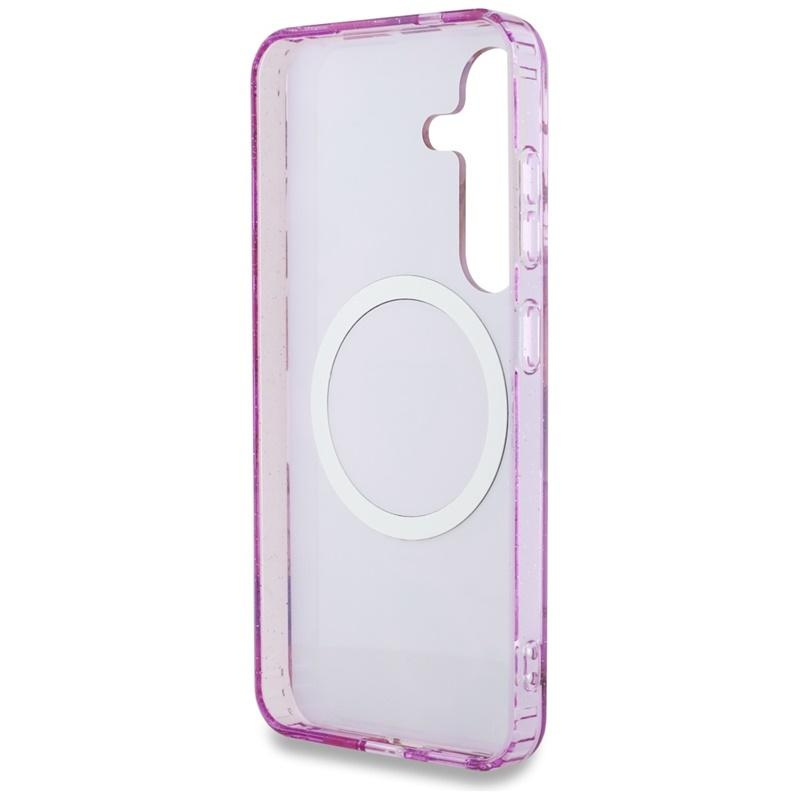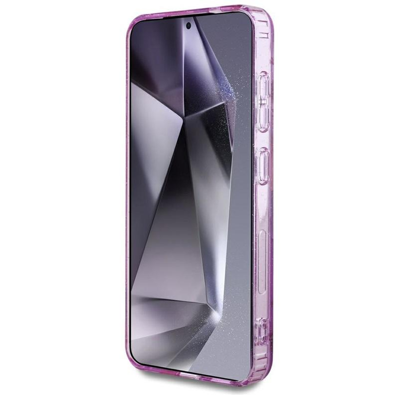 Guess Glitter Flowers Triangle Buttons MagSafe - Case for Samsung Galaxy S25 (purple)