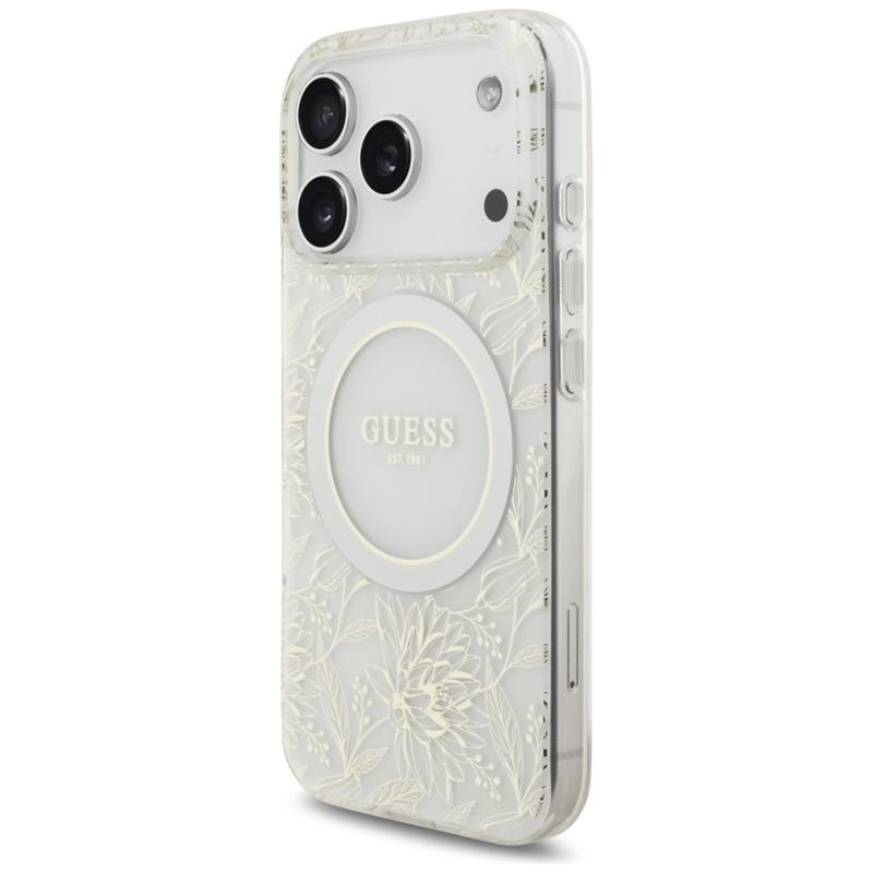 Guess IML Flowers Electro Pearl Strap MagSafe - Case iPhone 17 Pro (white)