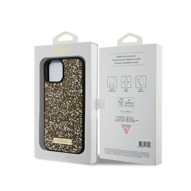 Guess Rhinestone Metal Logo - Etui iPhone 15 (żółty)