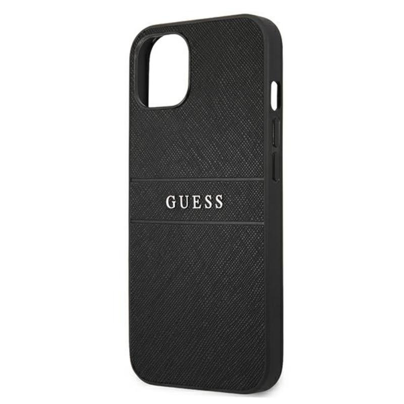 Guess Saffiano Metal Logo Stripes - Etui iPhone 13 (czarny)