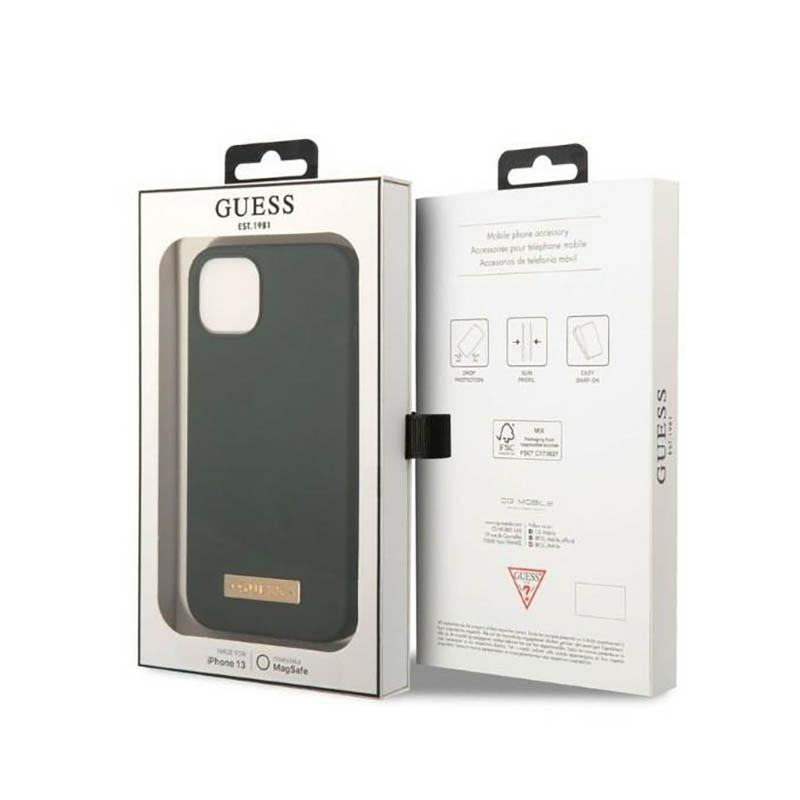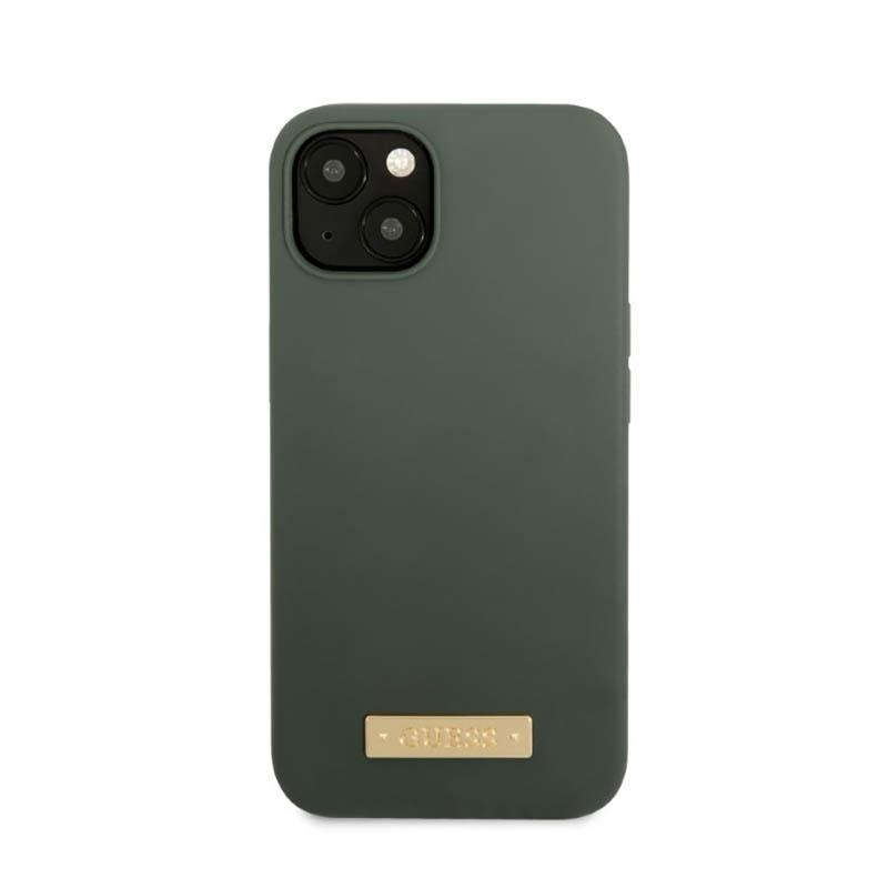 Guess Silicone Logo Plate MagSafe - Etui iPhone 13 (zielony)