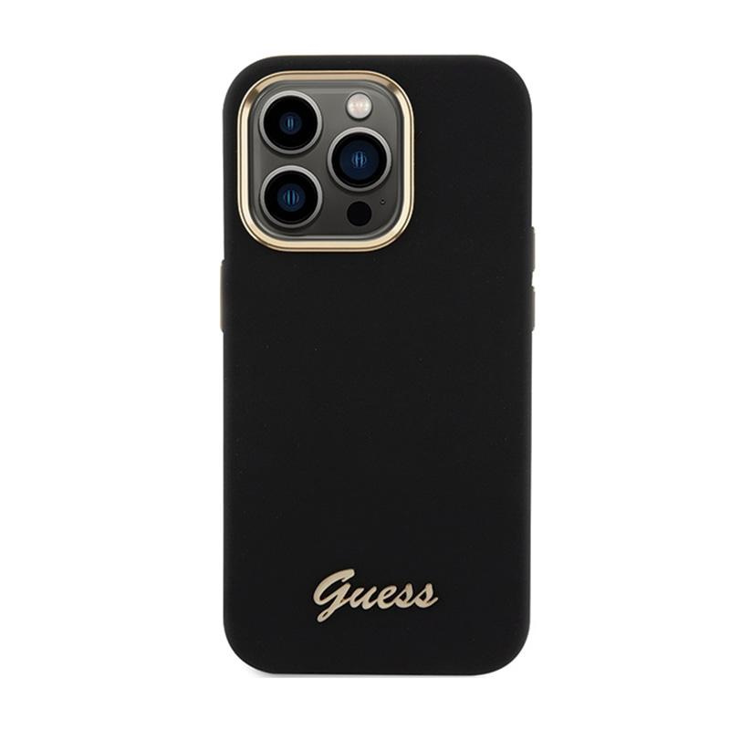Guess Silicone Script Metal Logo & Frame - iPhone 15 Pro Max Case (black)