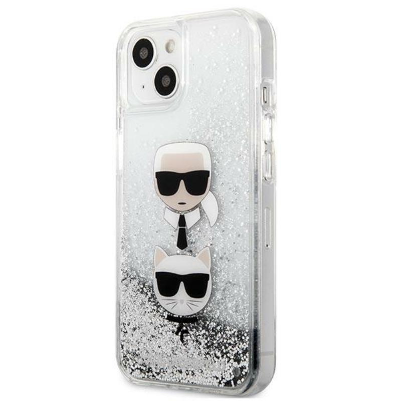 Karl Lagerfeld Liquid Glitter Karl & Choupette Head - Case for iPhone 13 mini (Silver)