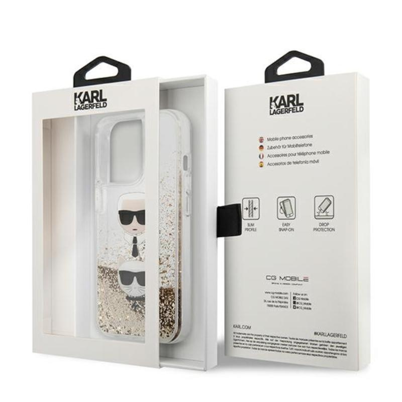 Karl Lagerfeld Liquid Glitter Karl & Choupette Head - Case for iPhone 13 Pro Max (Gold)