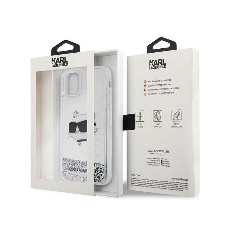 Karl Lagerfeld Liquid Glitter NFT Choupette Head - Etui iPhone 11 (srebrny)