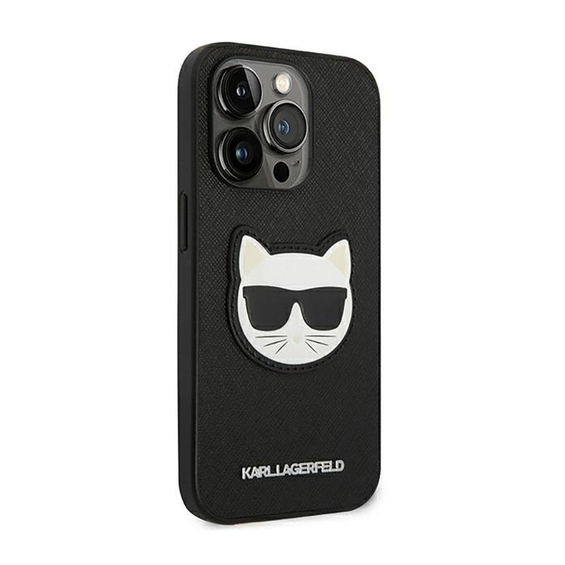 Karl Lagerfeld Saffiano Choupette Head Patch Case - Case for iPhone 14 Pro Max (Black)