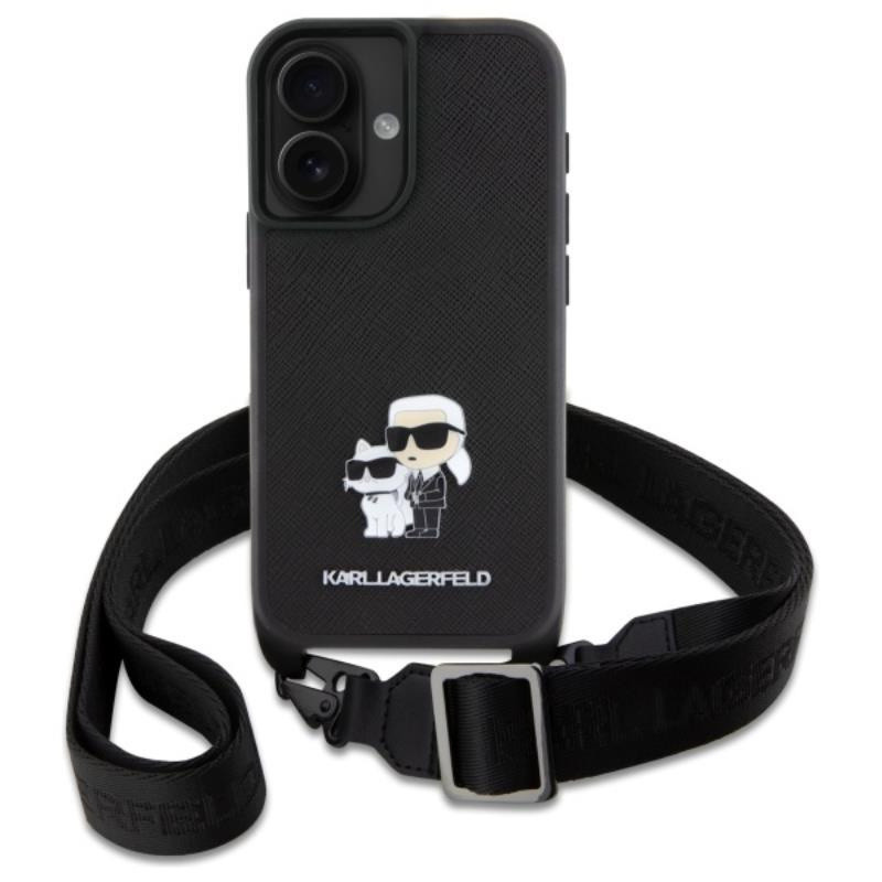 Karl Lagerfeld Saffiano Karl & Choupette Metal Pin CBDY Strap - Case for iPhone 16 (black)