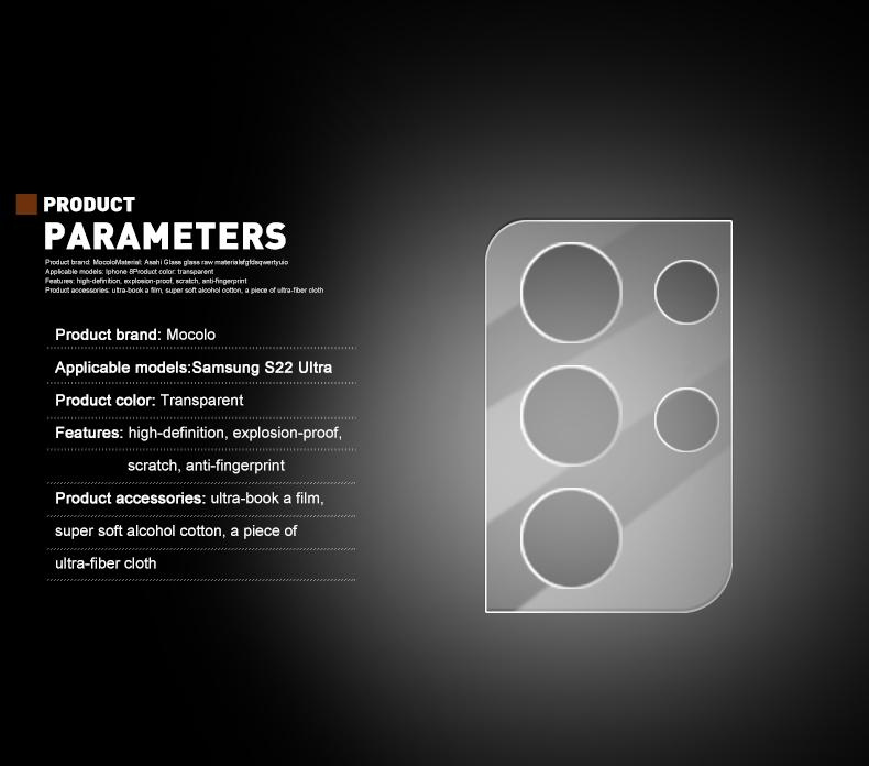 Mocolo Silk Camera Lens Glass - Protective Glass for Samsung Galaxy S22 Ultra camera lens
