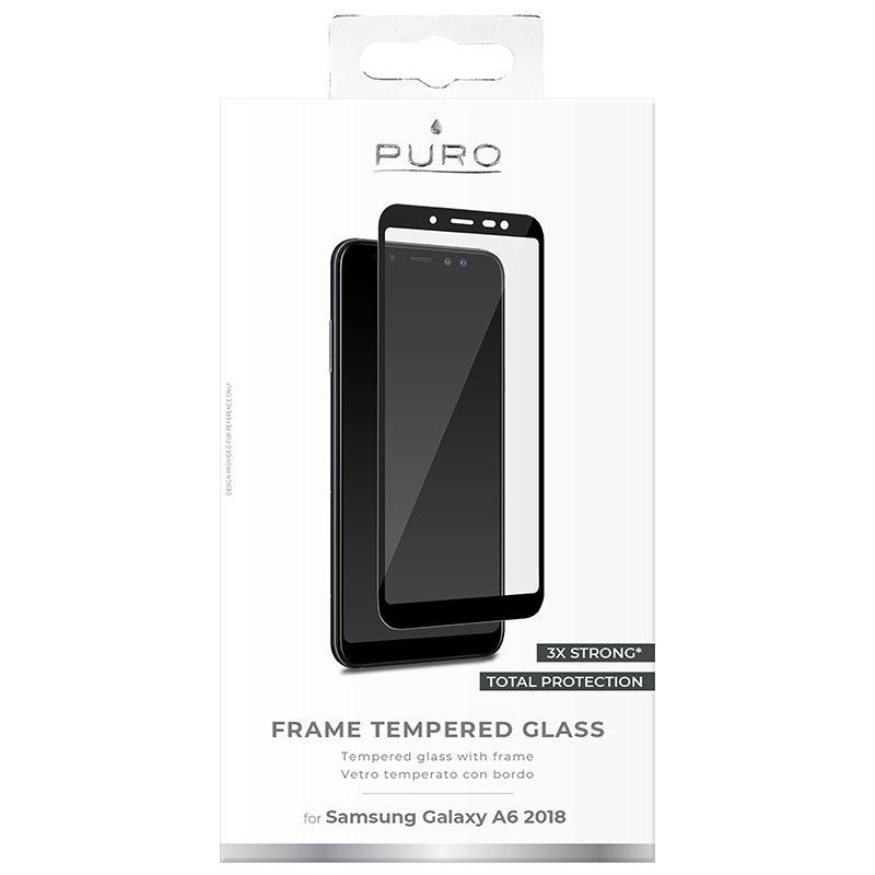 PURO Frame Tempered Glass - Szkło ochronne hartowane na ekran Samsung Galaxy A6 (2018) (czarna ramka)