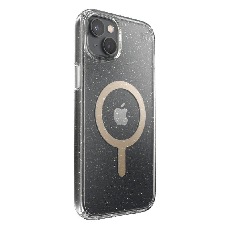 Speck Presidio Perfect-Clear with Glitter + MagSafe - Case for iPhone 15 Plus / 14 Plus with MICROBAN coating (Clear / Gold Glitter)