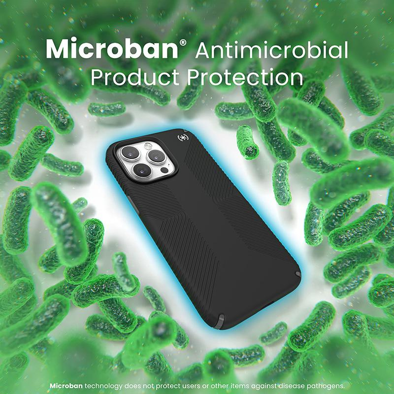 Oryginalna obudowa ochronna Speck z serii Presidio2 Grip oferuje też ochronę antybakteryjną MICROBAN® (światowy lider rozwiązań przeciwdrobnoustrojowych z szerokim portfolio ponad 25 zatwierdzonych technologii). Aktywny składnik wbudowany w strukturę etui powstrzymuje 99% bakterii, które gromadzą się na powierzchni etui. Technologia MICROBAN® zapewnia w ten sposób dożywotnią ochronę przed bakteriami powodującymi plamy i nieprzyjemne zapachy oraz działa na poziomie komórkowych, aby utrzymać czystość obudowy.