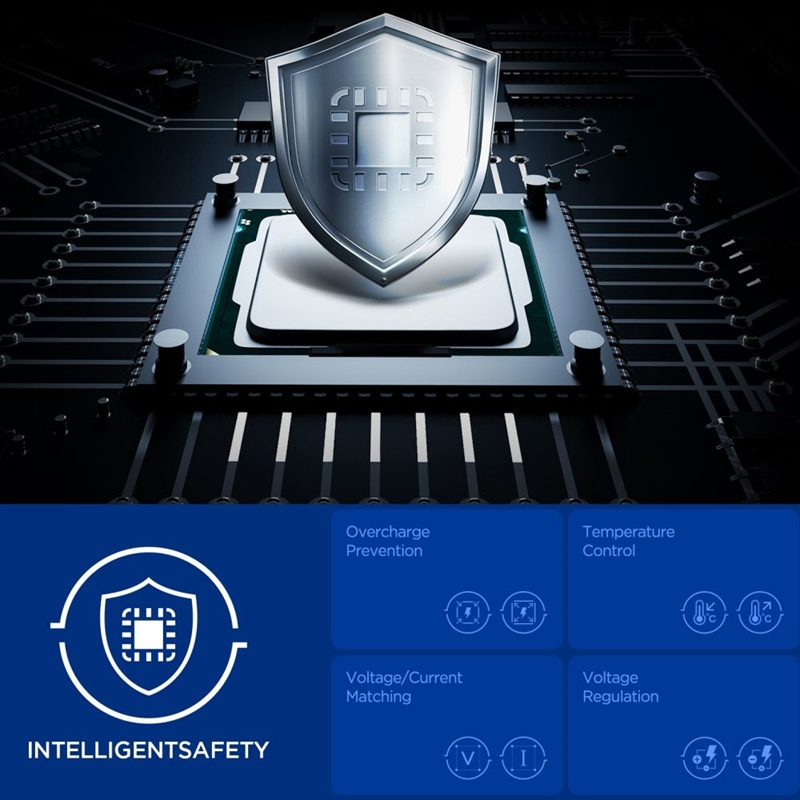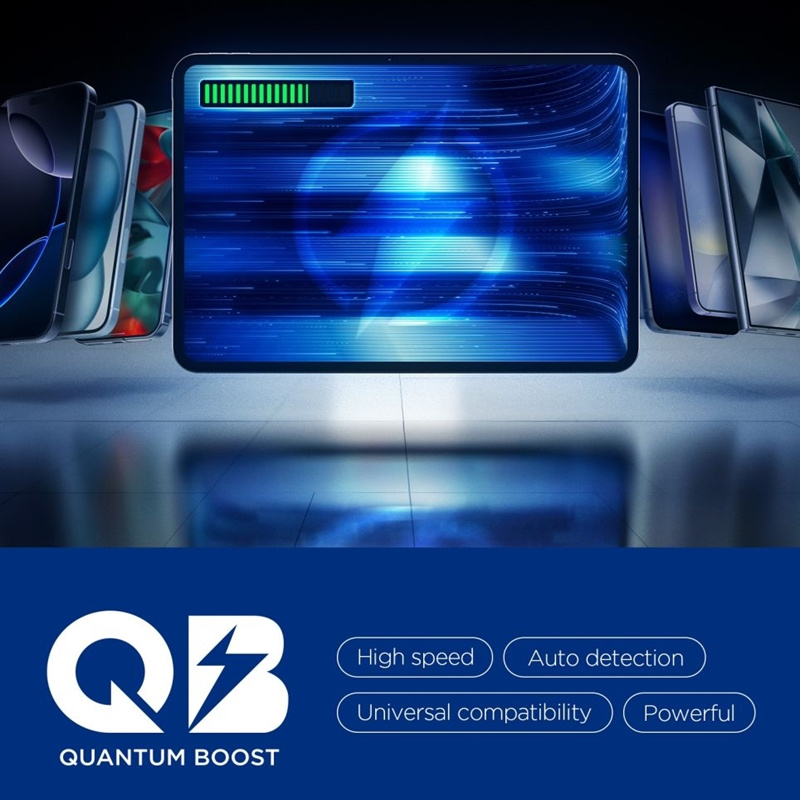 La tecnologia Quantum Boost adatta automaticamente i parametri di ricarica al dispositivo, massimizzando l'efficienza e riducendo i tempi di ricarica. La sicurezza è garantita da sistemi di protezione avanzati – Prevenzione Sovraccarico, Corrispondenza di Tensione e Regolazione della Tensione – che proteggono i dispositivi da sovraccarichi, tensione errata e corrente eccessiva.