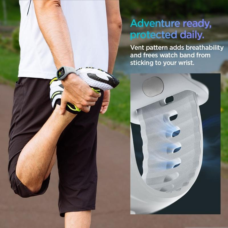 The Spigen Liquid Air Pro is a functional and stylish accessory designed for maximum protection and comfort on your Apple Watch 10 (46 mm). The modern, integrated design connects the strap to the case, offering comprehensive 360° protection – including a side button touch guard, protecting the watch from mechanical damage and everyday wear and tear.