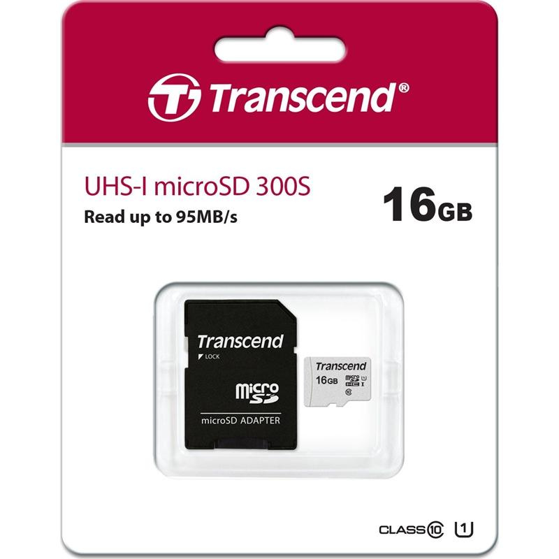 Transcend Memory microSDHC - Karta pamięci 16 GB Class 10 UHS-I U1 95/10 MB/s z adapterem
